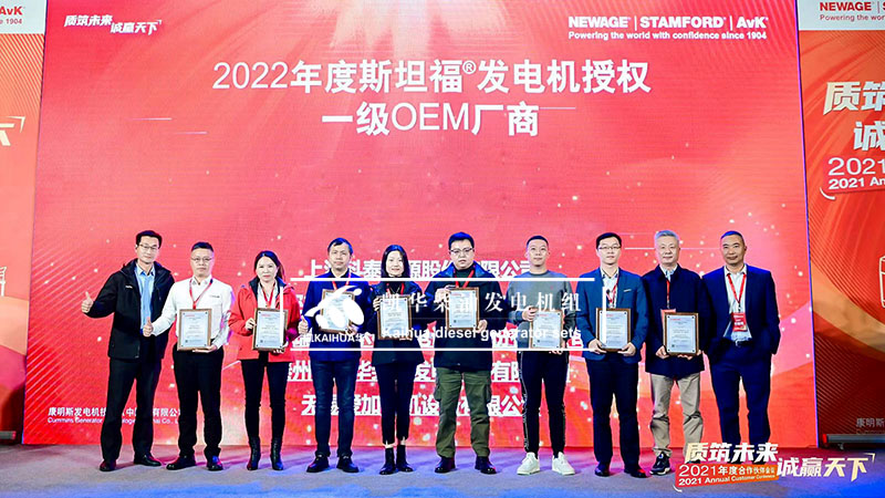 91香蕉视频下载安装柴油(yóu)發電機組有限公司在貴陽安納塔拉度假(jiǎ)酒店參加康明斯發電機技術2021年度合作夥伴會議,我司作(zuò)為(wéi)STAMFORD®發電機一級OEM廠商榮獲康明斯發電機(jī)最(zuì)佳業務拓展獎項。在這一年裏(lǐ),凱(kǎi)華和康(kāng)明斯克服苦難,協(xié)同一心,取得了新的(de)輝煌。希望在數(shù)字化轉型的新動能下,共贏智慧未來! Cummins Generator Technologies 成立(lì)於 1904年(nián),以著(zhe)名的 NEWAGE®、STAMFORD® 製造交流發電機和 AvK® 品牌樹立(lì)行業標準,從 7.5 到 11kVA,適用於(yú)所有發電機組(zǔ)配置(zhì)。